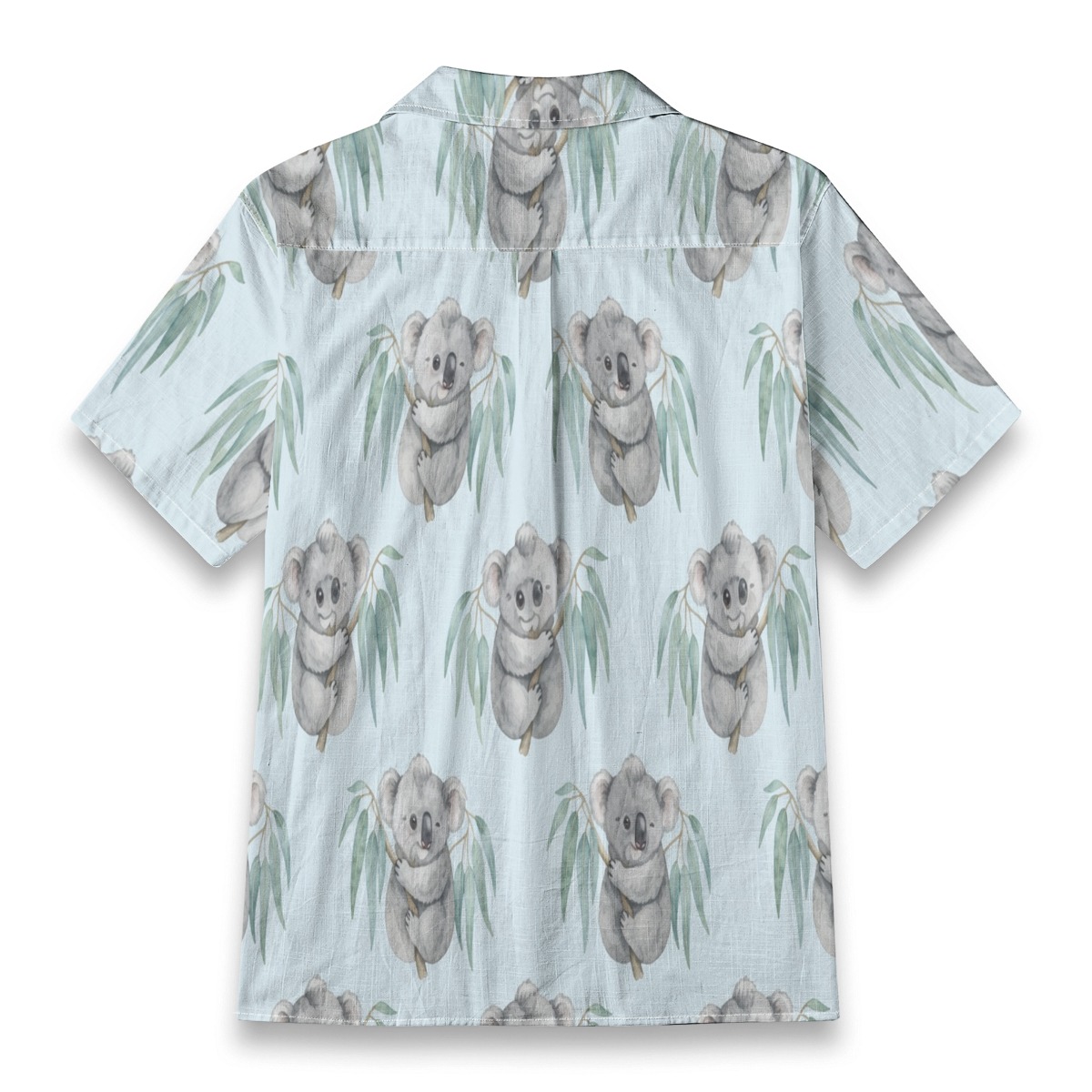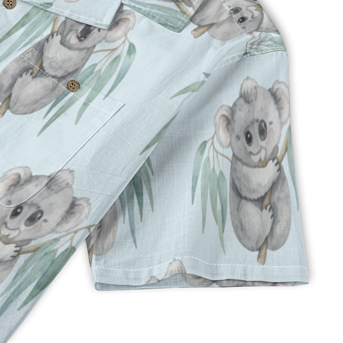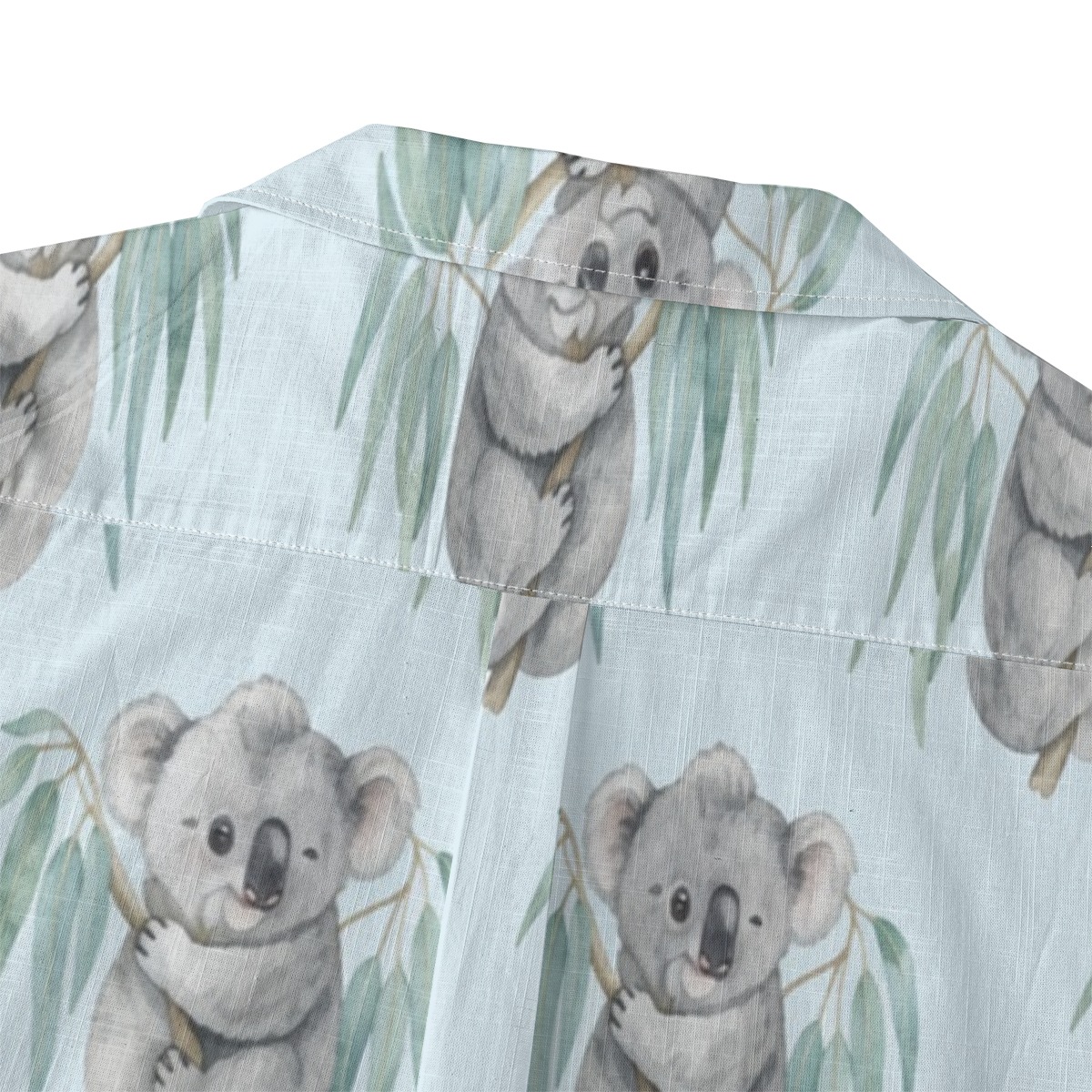 Calm koalas cling to drifting eucalyptus branches in a soothing watercolor pattern. Soft blues and muted greens create a tranquil, breezy feeling that flows effortlessly. The balanced layout keeps the design airy and serene, capturing a peaceful island mood with a gentle touch of nature.