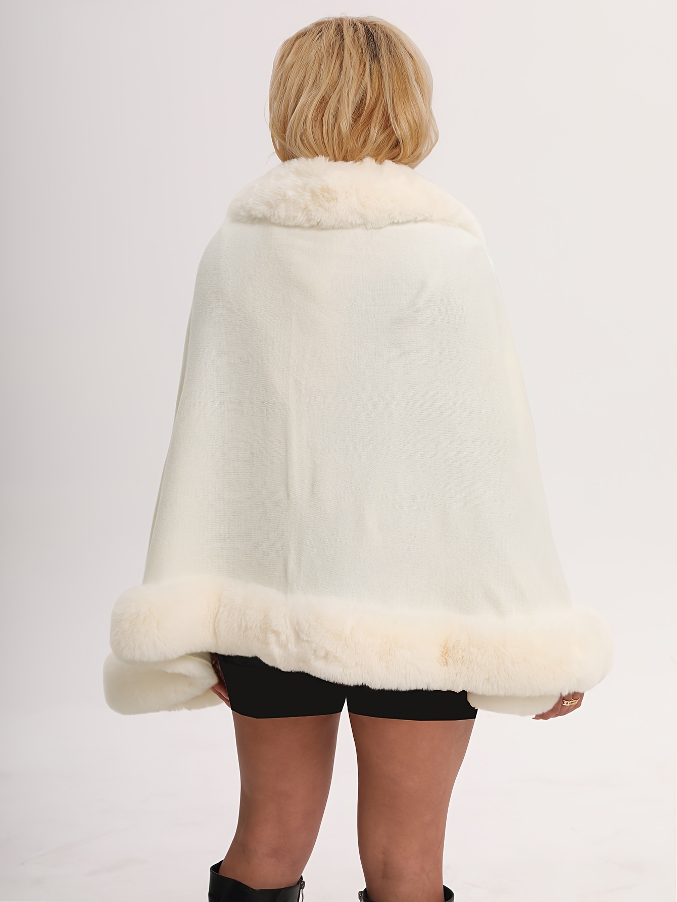 - Solid color design with contrast faux fur trim