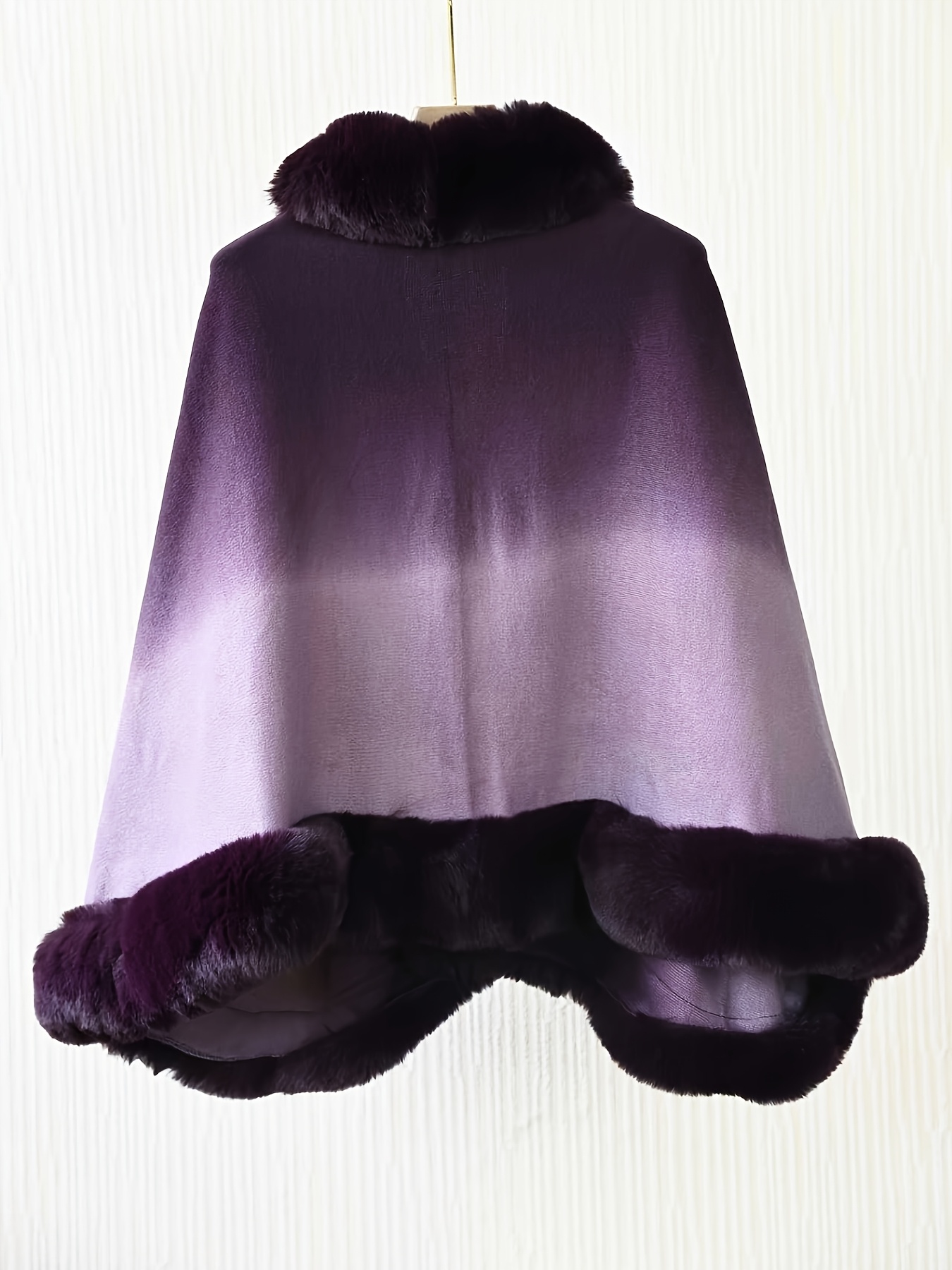 Women’s Elegant Ombre Faux Fur Collar Shawl – Brown Gradient Sleeveless Winter Cape with Button Closure, Soft Fall/Winter Wedding & Party Outerwear