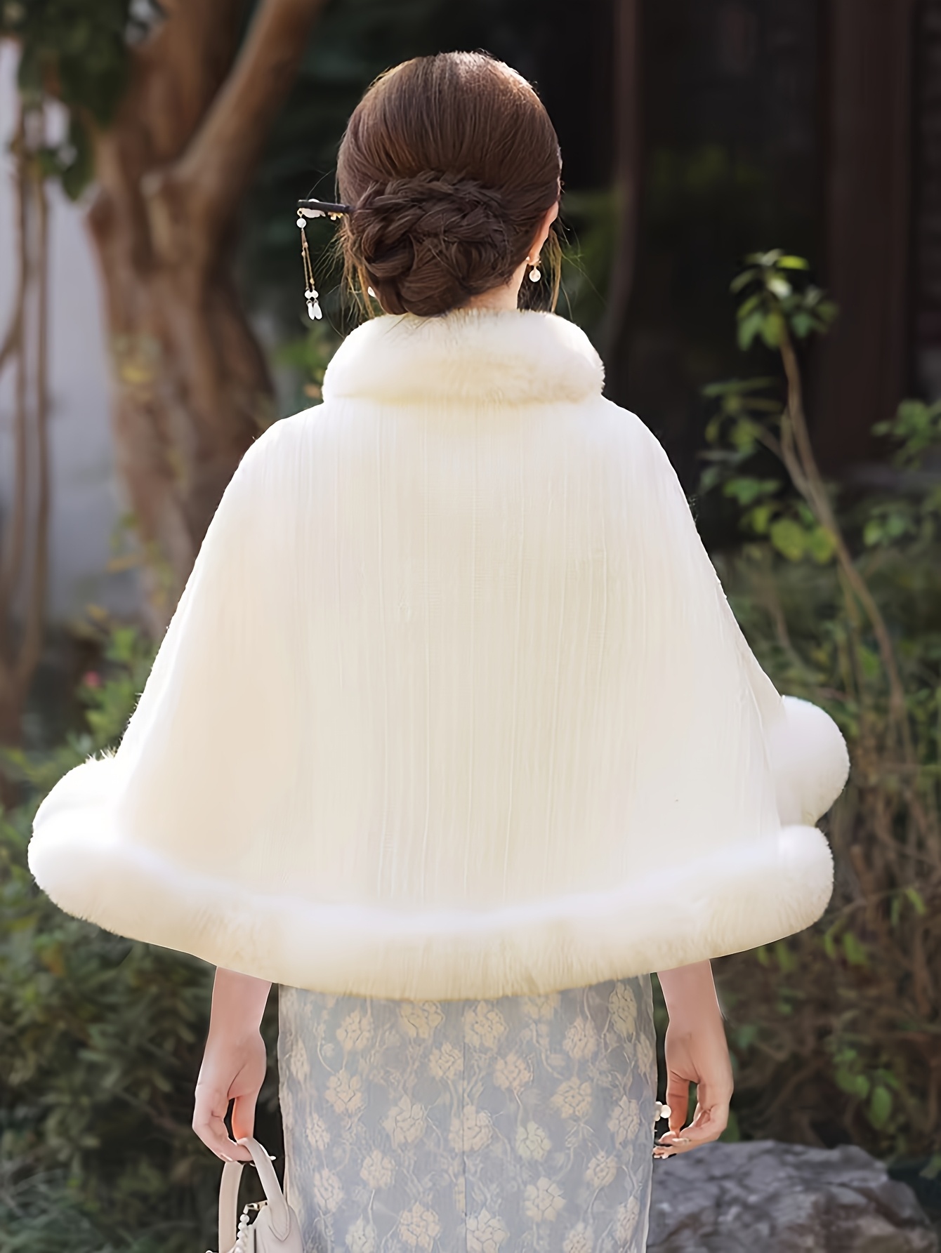 Women’s Elegant Wedding & Cheongsam Shawl Cape – Soft Fur-Like Wrap for Formal Events, Bridal Cover-Up, Hand/Dry Clean Only