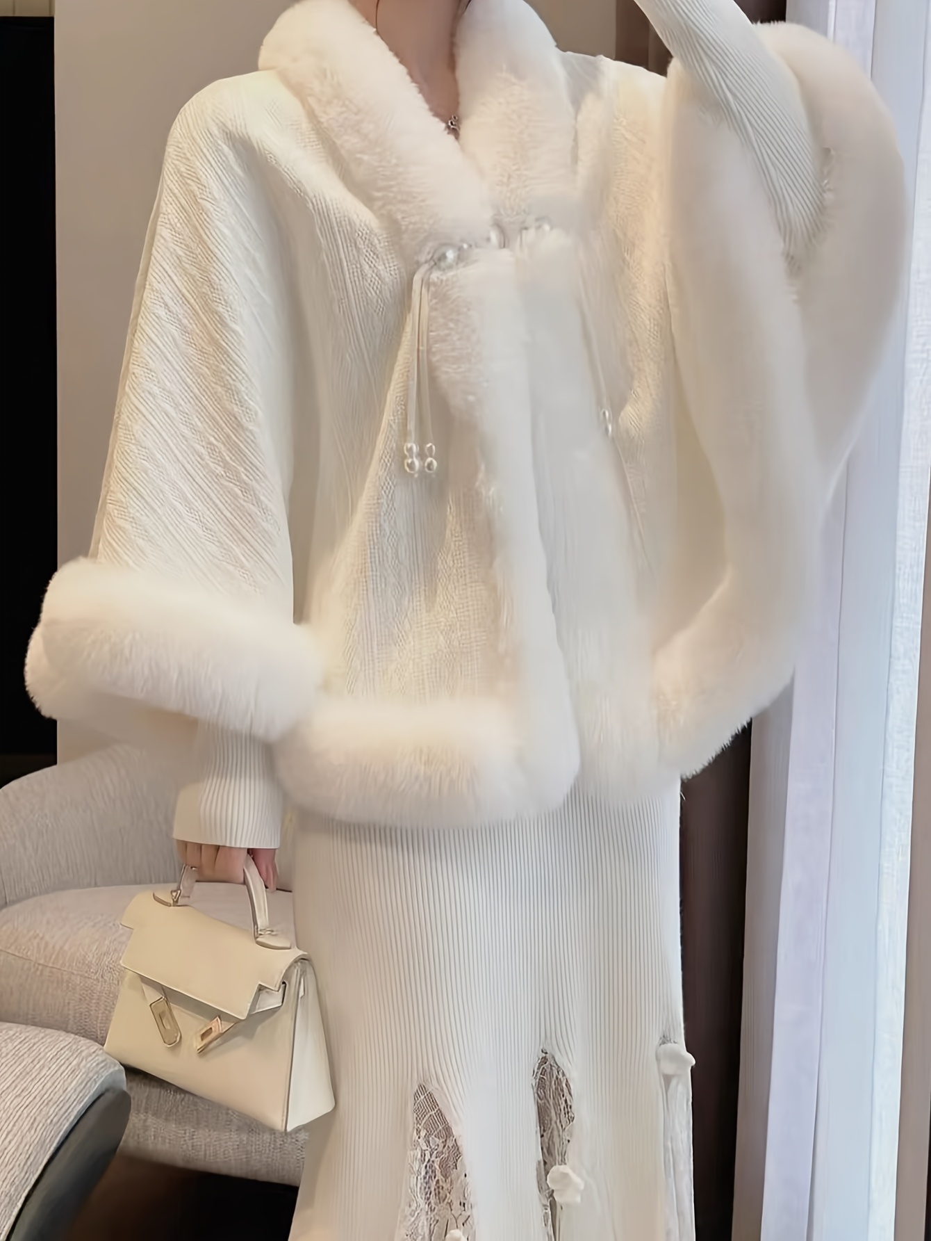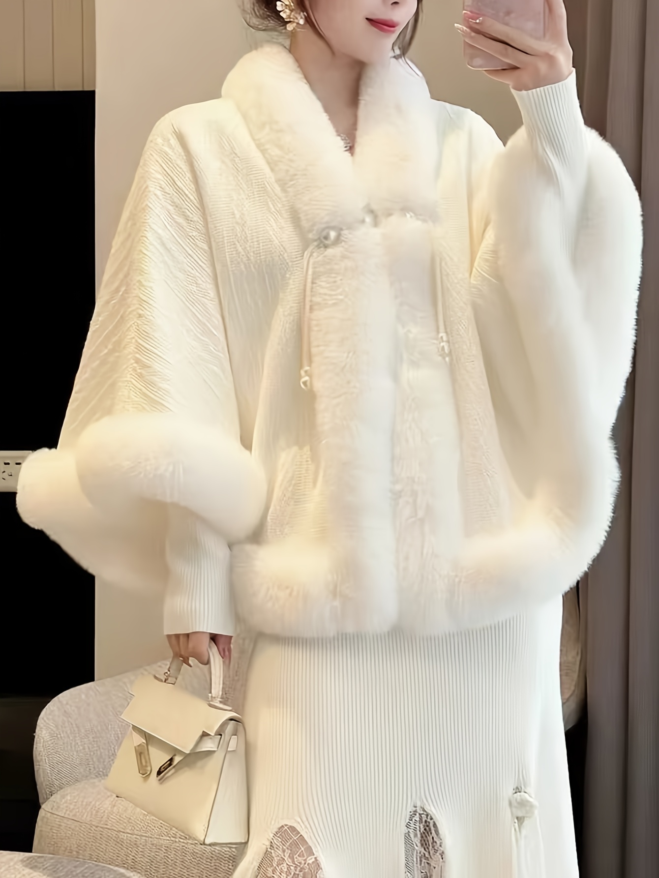 - Contrast faux fur trim adds a luxe touch